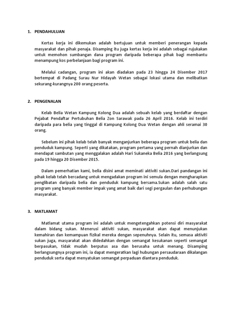 Kertas Kerja Karnival Sukan Wetan 2017 Pdf